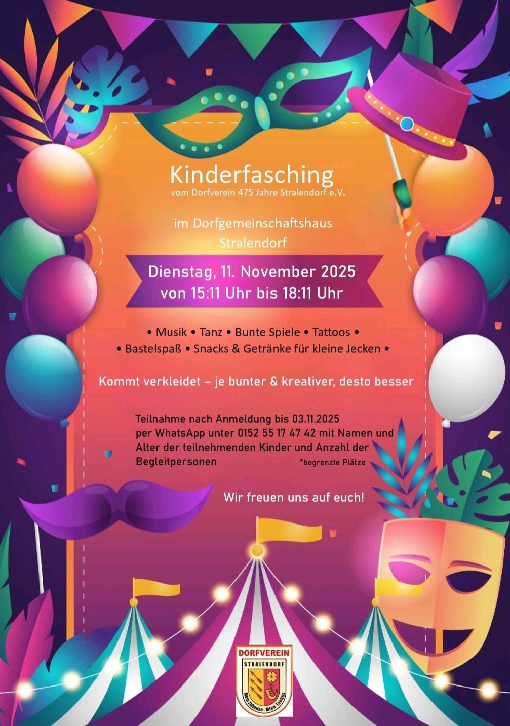15:11 - 18:11 Kinderfasching im DGH Stralendorf